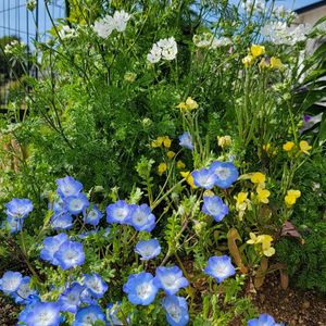 ( *ˊᗜˋ)ノこんにちゎ〜ꕤ*. 🌸 ネモフィラ 💙🤍オルレア 🌸 初めて地植えにしたネモフィラさん 零れ種から 来年🌱出たら いいなぁ〜 💙 オルレアさんも アチラコチラで 咲きだしました 🤍 午後もガンバです♡o(´∀`o*)
