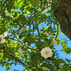 ( *ˊᗜˋ)ノこんにちゎ〜ꕤ* 🌸 ナニワイバラ 🌸 ご近所さんを 通り過ぎる時 気になったお花があったので 🤍 🚶♀️行ってきました ✿゚❀.(*´▽`*)❀.゚✿綺麗 🤍🤍