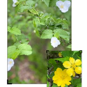 里山にヤマブキの花が咲いていました。 ヤマブキはバラ科ヤマブキ属の落葉低木 ヤマブキの花言葉は「気品」「祟高」 右下のヤマブキは八重の様な複数の花弁が 付いていました🌼