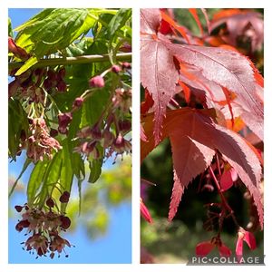 「カエデ」の花と種 左は4月13日、庭。右は4月20日 植物園で。 花と種はちょっと見にくいので、 拡大して見てくださいね。