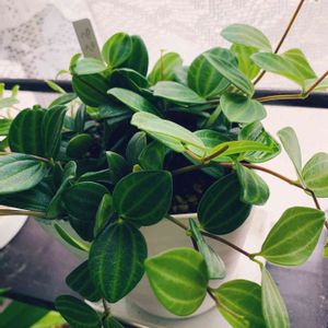 おはようございます☀ 今日も暑そう🥵ですね。 昨日仕事帰りにダイソーに寄り 何か無いかな?[壁]_・)チラッと物色してたら 入荷したばかりのペペロミア ♡⃛ |´・д・)σ 発見! スイカみたいな葉っぱで可愛い買ったので 2つ購入し、寄せてみました🥰 ペペロミアも種類豊富ですね( ̄▽ ̄;) この子は名前何だろ? 名札にはペペロミアとだけ……🥲 調べたらアングラータに似てるけど 合ってるかな?(*≧▽≦) やばいっ!観葉植物にハマり中🤣