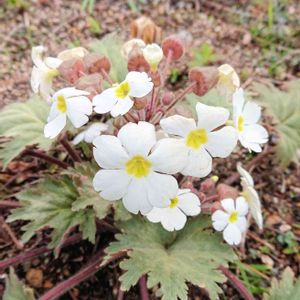 おはようございます この葉っぱの植物の名前わかりますか? 前にわからない植物をまとめてアップしたうちの一つです ユキノシタ?サクラソウ?わかりません😢 プリムラシネンシスと教えていただきました