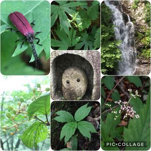 今月もフクロウ祭に参加させてください😁 7月中旬に行った三頭山。涼しげな感じにまとめました(?) ①三頭大滝、水量多め。この上の『ブナの道』は渓流沿い。真夏でも涼しく尾根上まで歩けそう🌟 ②シモツケソウはつぼみ。 ③ギンバイソウの芽生え、だと思う。入り口付近にたくさん咲いていたギンバイソウですが、山中ではこんな状態のみを発見しました。(豚の前足?の形がよく見えます) ④ガマズミかな。 ⑤この虫は分からず。色合いはベニボタルですね。ゾウムシみたいな頭です。と思っていましたが、よく見たら触覚が合わさっているのかー! ⑥モミジガサのつぼみに光が差していました。 ⑦青梅の外れの石屋さんでフクロウ見つけた。いろいろあったのでしばらくは登場させられそう✨一息つけた🤗ふうっ
