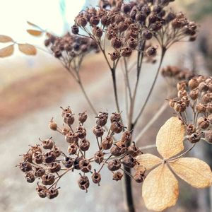 ヤマアジサイの花後。 果実の先に3つほど花柱が残る、ということですが、2つずつ残ってるように見えました。 なんだか果実一つ一つが生き物に見える? この状態だとタネはまだあるんでしょうか?? アジサイ科アジサイ属 花期6-7月、果実は10-11月に熟す。 葉痕はハート♡型。 麻生山にて