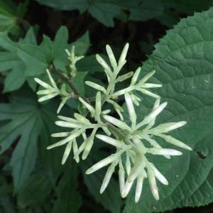 あきる野市十里木の里。下の秋川では行く夏を惜しむバーベキューが賑やかでした。 (反時計回り) 里で育てていたクサノオウ。 里から竹林を抜けると登山道でした。 山の尾根筋で出会ったホツツジ(の全景)穂がたくさん出てました! 2019.9.1 あきる野市十里木