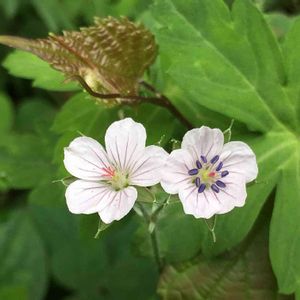 ゲンノショウコ、左の花はもうオシベが落ちて、逆にメシベが五裂し活性化。雌性期と呼ぶそうです。自家受粉を避けるための工夫だとか! 2019.9.1 あきる野市十里木