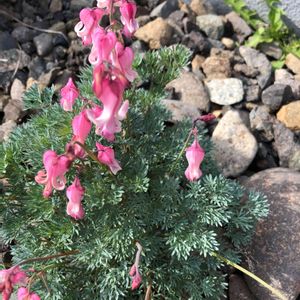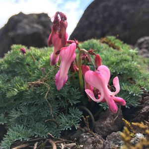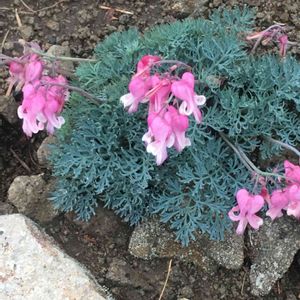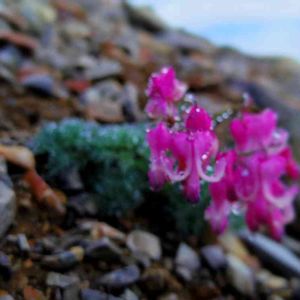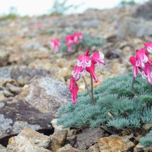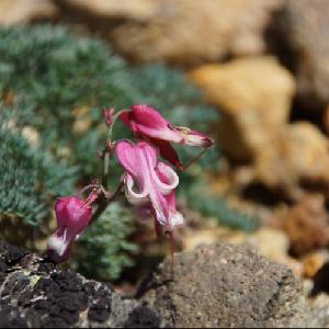 コマクサ(駒草) Dicentra peregrina ケシ科ディケントラ属 高山帯の砂礫地に自生する多年草 品のある姿と美しい色合いから高山植物の女王と呼ばれる 花の形を馬(コマ(駒)は馬のこと)の顔に見立てた事が名前の由来 花言葉は「気高い心、高嶺の花」