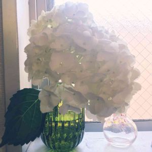 クビが折れちゃった子 どんどん短くなった子など いつも捨てられなくてこんな感じ ジャスミン満開 花瓶? 冷酒用のグラスへ