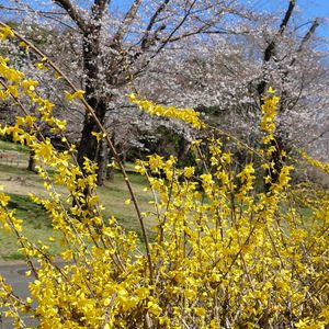 こんばんは😊 サクラ レンギョウ スイセン ニオイトサミズキ タンポポ ①②青空の下レンギョウと桜です🌸 見たかった景色❗️😍 ③スイセンはちょっと盛りを過ぎていましたが、このお花はまだまだ綺麗😊 ④ニオイトサミズキは可愛い小さな花が沢山😆 クンクンしましたが香りは…🤔 ⑤このタンポポは花茎の下を見たら日本タンポポでした😍 絶滅が危惧されていますが頑張って欲しいですネ😂