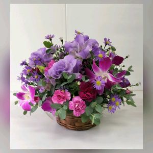 お久しぶりです 先日、初のフラワーアレンジメントに行ってきました ♡ トルコキキョウ ♡ デンファレ ♡ スプレーカーネーション ♡ クジャクソウ ♡ ユーカリ テーブルの上に長いままの花が配られ それを10cmくらいに✂️!cut オアシスにブスブス 差し込んでいくのが楽しくて🤭〜♫ 日頃、自分では選ばない 色合いでしたが 出来上がったらとっても素敵!😍 今日も素敵な1日をお過ごしください💐✨