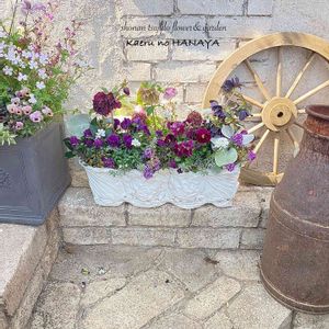 先日の園芸店での出張レッスンの見本でしたー。 春の花かごです。😊