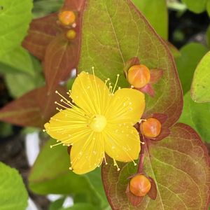おはようございます☀ 花束💐に入っていたヒペリカムを挿し木した鉢植えに、今年も花🌼が咲きました💕 真っ赤な実も楽しみです😊