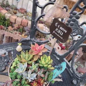 おはようございます☀️ ママ友のお家に私の好きな蛇口のブリキ鉢に偽物多肉(造花?)が入ってすんごい勿体ない事になってたので… 育て易い強そうな本物の多肉ちゃん達を植えてあげました(ಡ艸ಡ) プクク 可愛がって貰ってね〜💞