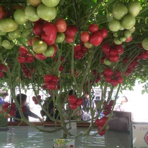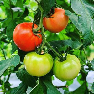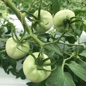 隣り合った真っ赤なトマトと緑色の若いトマト!