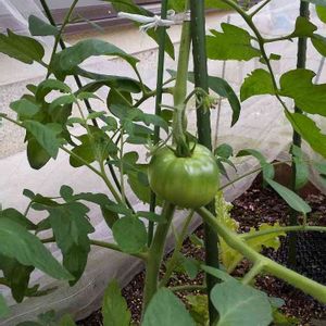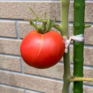 トマト🍅がやっと一個だけ収穫できそうです😀
