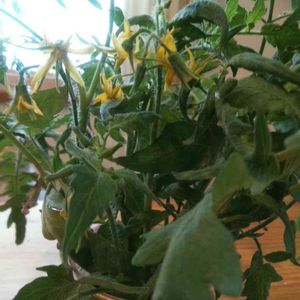 台風の前に 沢山収穫し 枯れ始めたトマトを 切りました。 まだ 咲いていた花を 感謝を込めて 飾りました。 トマトの花 トマトの香り 指までも