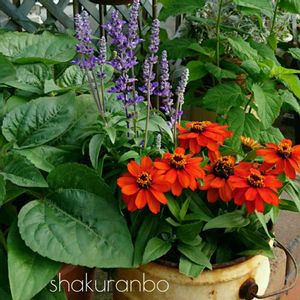オレンジ、オレンジ 今日の花【ジニア】 我が家では、はじめまして❗ 種から🌱育てた🌻🌿ミニヒマワリがモリモリ成長。 この夏、この花達の物語が始まる。