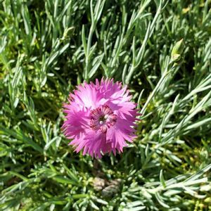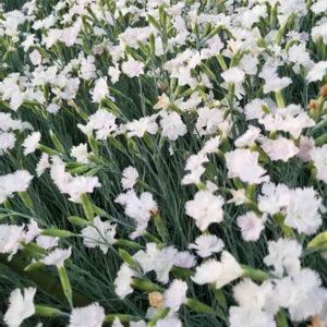 ダイアンサス(ナデシコ)・レインボーラブリネスが咲いてます。花弁の切れ目が深くて、前出の伊勢ナデシコにちょっと似ています😊伊勢ナデシコほど切れ弁が長くて垂れ下がるほどではないですが😁どこにもそんなことは書かれていないのですが、この品種には伊勢ナデシコの血が入っているんじゃないかなと勝手に想像したりしてます🤗並んで咲いているとほんとによく似ているので~ヾ(≧∇≦)ノふわふわした咲き方と、軽い香り、優しい花色がとっても気に入っています(*^▽^*)これも去年の9月に種まきしたものです。育てやすさもナデシコの仲間のいいところですねー😁😍😻