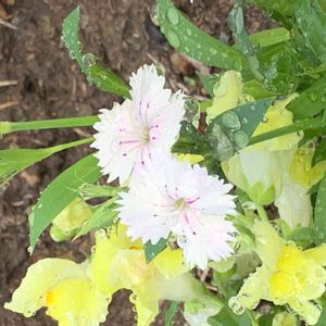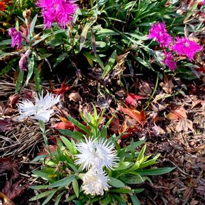 おはようございます🤗 昨日と一転して暖かい朝です☁️ 撫子ちゃんも石竹並みの丈しかないけど、咲いてます🌸 白と濃いピンクの並びも綺麗だなぁ🥰