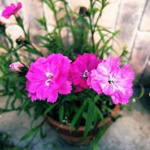 ホームセンターで値切りされていたナデシコをコーヒーかすを再利用した土で育ててます。 花が咲いて嬉しい😊✨