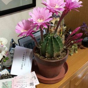 ☆─┳─┳─┳─┳─☆ ┃ こ|ん|ば|ん|は| └ ★┻─┻─★─┻─┛ /((⌒⌒⌒)) ∩∩ お┃ ~~┠┓ (*>△<)疲 ┃o + °┃┃ |oo| れ┃ 。 o ┠┛ ◯UーU \┗━━┛ サボテン長盛丸 蕾8個あります。 今年3回目の開花。 何回咲くんだ〜 今晩咲くかも〜(^ν^) ドキドキ💓