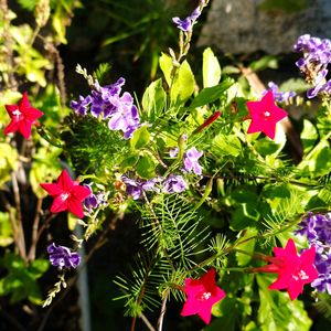 おはようございます。 我が家のデュランタにルコウソウが、絡まって咲いています。