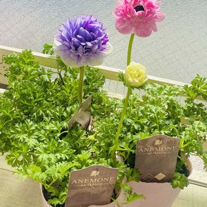 アネモネ アンアリスさん♡ お迎えしたものの なかなか植え付け出来ず もう半月ポットのままです。 やる気と時間がある時は なぜか雨が降ります☔💦