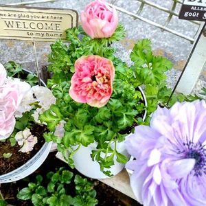 アネモネ姐さん達💐 今日も素晴らしい咲きっぷりでございますね😆 いつも癒やしを頂いております。 誠にありがとうございます🙇🙇 おや……?真ん中に なんか見慣れぬ、超絶カワイイアネモネがいるような気が🥳 あ、あ、あれは ア、アン、アンアリス💐💐 神様、出会わせて頂き誠にありがとう御座います🙇🙇 今日たまたま、ガーデニングショップに行き💨 ナイスな割引品が買えて、満足して帰ろうとした際に 向こうから、店員の方がガラガラと何か可愛らしいお花を運んできました💐💐 それがたまたま、アンアリス🥳 🥳🥳 タイミング良かったぁ🤗 周りに誰もおらず、選び放題だったんで、蕾がしっかり目で葉っぱがたくさんの物を選べました🎶🎶 もうまじで、かわいいですぅ😍😍 でも、ちょっち高かったなぁ💰 人気者だから仕方ないですかねぇ😅😅 お店によっては、購入個数制限みたいのがあるらしいですね🤔 確かに、今日も20ポットくらいしかなかったかな🤔 これは貴重品だから、枯れたら球根掘り上げて保管しよう💰💰