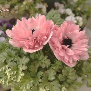 アネモネ アンアリス 一番花開花しました🌼 写真に撮るとちょっと濃いピンクになってしまいますが、実物はもう少しだけ柔らかいピンクで、かわいらしい印象のお花なんです🌼 ピンクと白、中心の黒のバランスがホントにかわいいバランスです。