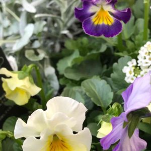 こんばんは🌙✨ 今日は、ひさしぶりに寄せ植えをつくりました💐 ビオラ、パンジー、アリッサム、ビナンカズラ、バコパを寄せてみました😃 ビオラ モココ パンジー フリル咲きのタグなし アリッサム シュリ ビナンカズラ 斑入り バコパ 零れ種育ち しばらくして寄せ植えがなじんできたら、全体像を投稿します🤗
