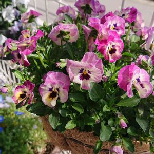 わが家のハンギングバスケットで咲いているビオラ達🌼 そろそろ徒長して元気がなくなってきました🥺 GWにはさよならする予定です💐 秋から春まで、長い間ありがとう😆💕✨ 最後の勇姿を👀📷️✨ わが家のパンジー、ビオラ💐 フィオリーナ(ゴールド&オーロラ)とシエルブリエは衰え知らずで元気モリモリ😃✨ まだしばらくわが家のお庭を彩ってくれそうです🥰