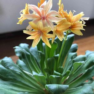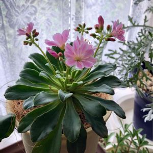 おはようございます😃 暑くなり、部屋に連れてきたレウィシアに3番花が🌸咲きました❣️ 花は小さいけど、葉っぱはイキイキです。 去年も夏越し、冬越しをしてくれた子です😉