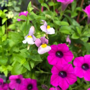 おはようございます😃 久しぶりに雨が上がり朝からガーデニングです‼️ 花がら摘み・枯れた葉を取り、株元を寄せたり・・・ 挿し木をしてたネメシアが咲いてました❣️ ペチュニアも去年の挿し木組です。 親株はこの雨で枯れちゃいました😅