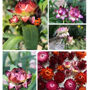 おはようございます😃 帝王貝細工(ヘリクリサム、ムギワラギク)が次々に咲いてはカットしてドライへ。 今年は早めにカットして、乾燥中に良い具合に開いてくれてます❣️