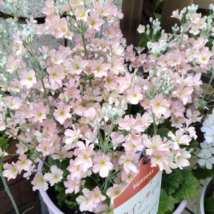 サクラソウ・ウインティー🌸 左がローズ🌹右がピーチ🍑 雨☂️で花が濡れると 花がついている茎ごとぐったり倒れるので 軒下避難させましたが つかの間の☀️が出てきました✨
