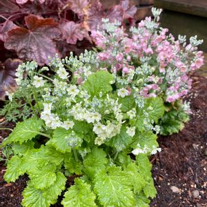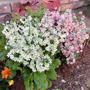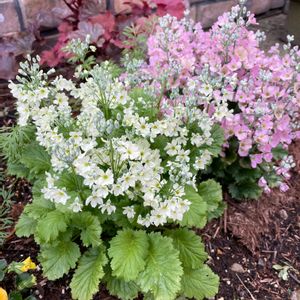 昨日のプリムラマラコイデスを、ウインティーと共に玄関先に飾りました🌸