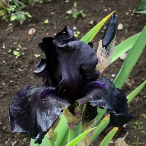 どこにあるのか分からないない花でしたが、遅れて今頃て咲きました✌️ 黒いジャーマンアイリスですよ‼️ 陽が当たって、紫色の濃い色が、よく分かりますね🤗