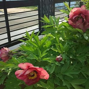 同じく隣家の庭よりークレマチスは植えてから15年経ったそうで、手のひら以上の大きさにびっくりです‼