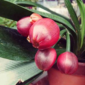 お買い物に出かけたら 赤い実が🎵艶々 クンシランの実かな?