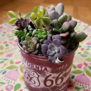 キュンキュン乙女倶楽部❤ 倶楽部活動に参加しま~す😄 今日、株分けしたのと子株増やしたのを使って、初めて多肉ちゃんの寄せ植えに挑戦してみました🌵🔰 ちょっと難しかったし隙間あいてるし😫 でも…すごく楽しかった~🎶 寄せ植え多肉ちゃんの可愛さに胸キュンキュン😆💕 心ときめいちゃいました~💞