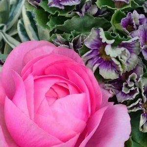 キュンキュン乙女倶楽部 今月の部活動 トキメキ ピンクのラナンキュラス ジワリ…ジワリと来てます💓 バラ?芍薬?そう言われたらそれにも見えちゃう|´-`)チラッ 一緒に寄植えした プ…プ…プ…なんだっけ? シックなグリーンとパープルがお気に入り💓 なんと⤴100円です(♡ˊ艸ˋ) 昨日の寒波で北関東にも雪が⛄ ちょっと元気が無くなりました💦 今夜は玄関に仕舞い込みます🤗