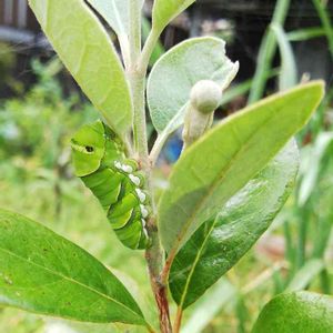 ハッサクで見かけた君ですか? 2m以上山あり谷あり離れているよね。 これはフェイジョアだから、目からして違うよ。(ムクロジ目ミカン科➰フトモモ目フトモモ科) わざわざ引っ越してきて、食べられるの? もし食べられても花芽は食べないでね。