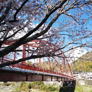 この時期、山に桜が生えている場所がよくわかる。この山は城山(シロヤマ)といいます。前回投稿は城山(ジョウヤマ)でしたね。 禿げているのは竹林を伐採した跡です。急傾斜地で浮き石が竹によって揺り動かされると危険なので一気に伐採されました。何年も経ちますが、再生してこないので駆逐は成功したようです。 ❓リンくんのなぜなぜ❓ 狩野川に架かる修善寺橋。橋脚の無い吊橋になってます。さて、何故でしょう? 以前は橋脚の有る橋だったが、狩野川台風の時に流れてきた倒木が橋脚に引っかかりダムを作り、そして決壊して多大な災害をあたえました。おばあちゃんも、家を流された一人です。当時を知る人も高齢化して伝承していく事の難しさを感じます。