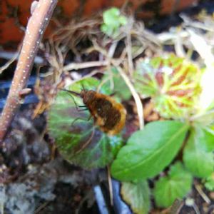 ブブブブとうるさいぞ。 あなたはだあれ? 高速で羽を動かしているから羽は映らなかったようですね。 花の無いところを飛んではホバリングしているので、水分補給かしらね。 けいさんに教えていただきました。この子は ビロウドツリアブ(ビロードツリアブ)。 とてもお口の長い子です。春の花から蜜を得やすく進化したのでしょうか。