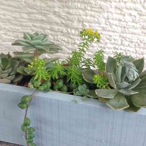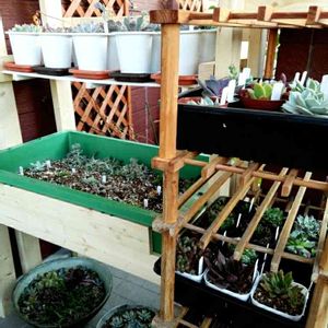 2日ががりで、やっと棚が完成!あまりの疲れに色を塗る気力を失いました(完成してないとも言う)。まぁ、秋に室内に多肉を取り込んだ後に塗ろう!と思います。たぶん…きっと…いつかは…。 元はと言えば恋い焦がれた子持ち蓮華にホームセンターでやっと出会えて勢いで3ポット買った事が始まりでした。プランターに植えようかな?鉢を買おうかな?でもランナー結構長そうじゃない?と想いを巡らせたどり着いた答えがメダカを飼育していたトロフネでした。おお!我ながらグッドアイデア!と思ったけど土入りのトロフネを支える台はなく、作る事に。トロフネ乗っかって喜んでたら、あれ?エケベリアのスペース足りなくない?全部乗らないよね?しかも買った箱のまま並べてないセンペルもあるよね?な感じになり、急遽家にあった木製ラックを連結して即席の棚にしました。棚板増えたからもっと置けるー(*´ェ`*)と、嬉しい誤算。子持ち蓮華に出会ってしまい、200円の安さに3ポットも買ってしまい、浪費ループから抜けられなくなった人間です。