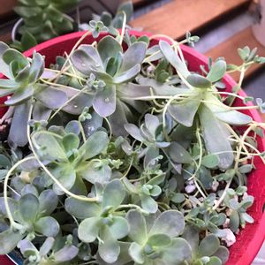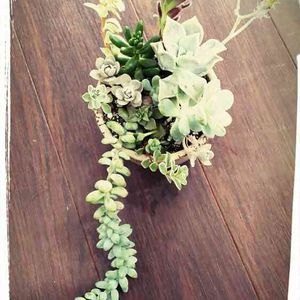 ぶら下げ鉢に寄せて見ました( ☆∀☆) 子宝草なかなか大きくならないので、土から植え替えてみました(≧∇≦) 大きくなあれ✨
