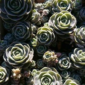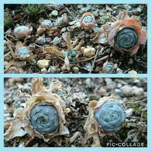 ■Orostachys オロスタキス ・Boehmeri ・子持ち蓮華 昨年の今頃、お連れし夏に全滅寸前にしました 理由は夏に遮光せずに陽当たりバッチリの場所で給水し溶かしました😱 その後、半日陰で養生&越冬し春になり復活してくれました 現在は週イチのたっぷり水やりです♪