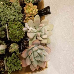 子持ち蓮華錦BOX🗃️。 ちょっと見にくいですね( ̄▽ ̄;) でも、結構な数植えてますよ~(。-∀-)♪ウシシ 植えるスペースがいっぱいあって…我慢できず(;´д`)💦 なんか葉挿しっこや子苗も植えちゃってるのバレちゃいました(。-∀-)♥️?笑 やっぱ変? やめた方がいいかなー?? でも、ここに増えた子苗なんかを植えたら、だいぶお一人様ポットの数も減るしいいなーと思ったんだけどヾ(;゚;Д;゚;)ノ゙ 個人的に、このBOX超使いやすくてっ(人´∀`*)♪ 大きくて高さもそれほど高くなくてちょうどいい v(o´ з`o)♪ 土は結構な量使うんだけどね(;^ω^)💦 プラ箱だから地味~で安っぽいし可愛さ0なんだけどね(*`艸´)=3 プハッ