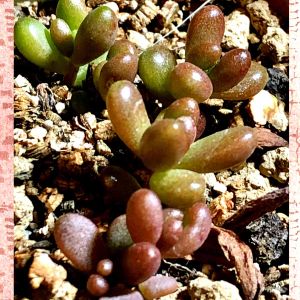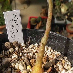 アデニア グラウカ 10月タナベフラワーさんで王蟲さんとオソロで購入 ついに‼️葉が落ち休眠💤 春、可愛い新芽を出してお目覚めです 🙏お願い目覚めてね‼️ 早く会いたいなぁ~🎵 H 7cm