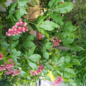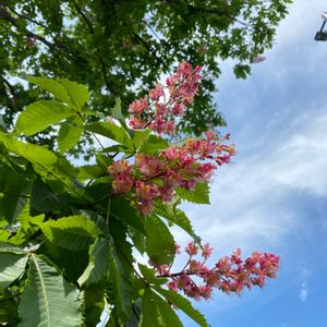 ベニバナトチノキ(トチノキ科) 園芸品種 マロニエ(欧州産)とアカバナトチノキ(北米産產)の交雜種 少し戻ります 6/20の朝🐕散歩 ↗️↙️ 花と若い実はもっと戻って5/11 トチノキの「ト」は十を意味し 沢山の実がなる事を表しているが 本種↑は日本のトチノキのように成熟する事が少ない 遠くからでも目を引く華やかな花です💕